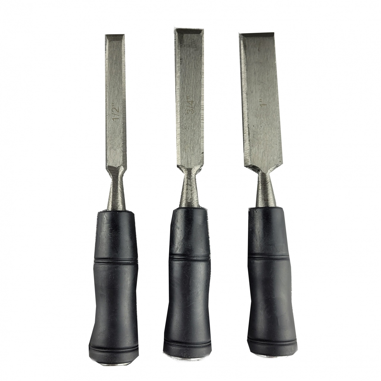 В комплект входят три стамески по дереву шириной 12, 18 и 25 мм.